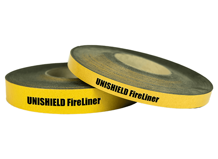 UNISHIELD FireLiner is a high-performance fireproof sealing material designed to prevent the spread of fire, smoke, and toxic gases. When exposed to heat, this tape expands significantly to create a fire-resistant barrier. Its easy-to-cut design allows for custom application to seal gaps around doors, frames, and glass.